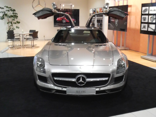 2009121020360001.jpg今日からメルセデス・ベンツの展示場で花屋を2日間オープンするんですが前日の昨日、1日のみでまだ発売前で金額も決まっていない(2500万~3000万くらいらしいです。)SLS・AMGという車の展示会をのぞいてきました。