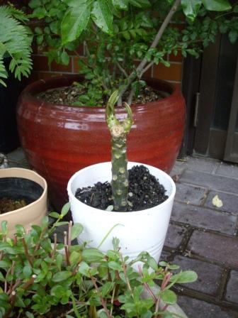 9dc5279a.jpeg以前母がハワイに行ってプルメリアの茎を買ってきたと言う事を書きましたが、見事に芽を出してきました。