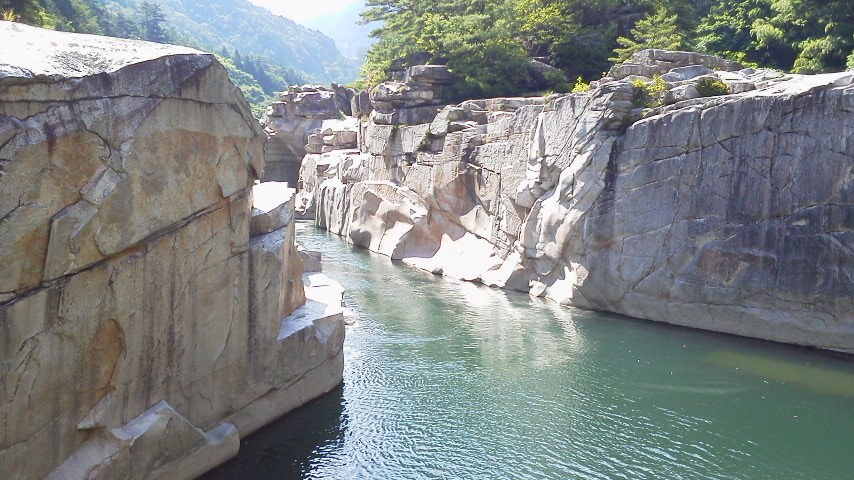 木曽川の水流によって花崗岩が侵食されてできた自然地形だそうです。 寝覚の床には、浦島太郎が竜宮城から帰ってきた後の伝説が残っているそうです。 なかなかの光景でしたよ。 とても暑い日でしたが、水はとても冷たいし風も涼しく気持ちの良い時間を過ごしました。 ただこの場所までの行き帰りの坂で汗ベショベショになり