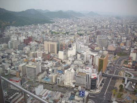 中央から少し右下に見える茶色の建物が大岐阜ビルです。