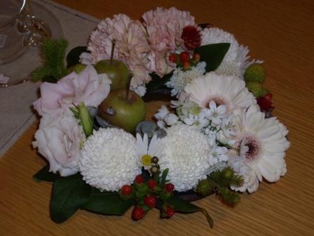 リングオアシスといってリング型のスポンジ(そのままですが!)に季節のお花を取り入れて作ってみたそうです。