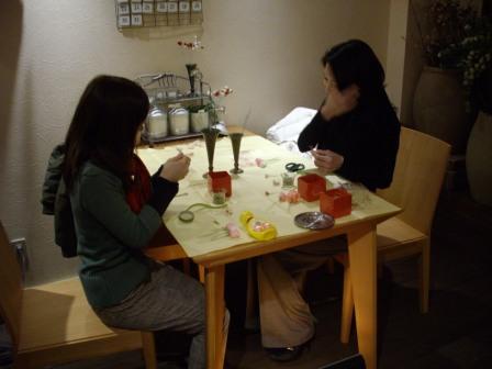 今日は同じ会社の仲良し二人組みから「プリザーブドフラワーのミニアレンジのスクールを