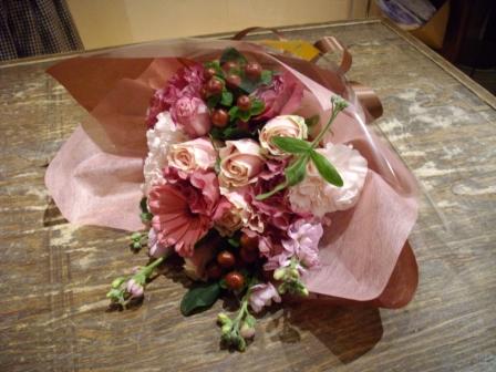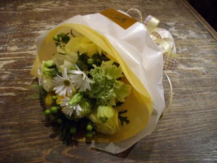 こちらは親子でおみえになられて、お子様からのプレゼントという事で小ぶりのかわいい花束を作りました。